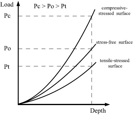نمونه ای از نمودار نیرو- عمق نفوذ و اثر تنش های پسماند بر نمودار ( Wang, Q., et al. (2006))