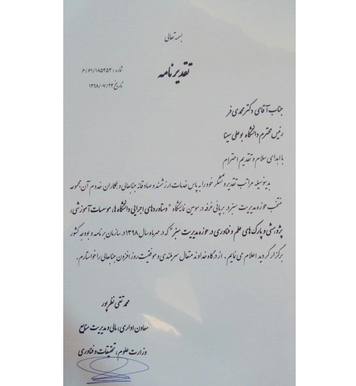 تجلیل از دست‌اندرکاران مدیریت سبز دانشگاه بوعلی‌سینا