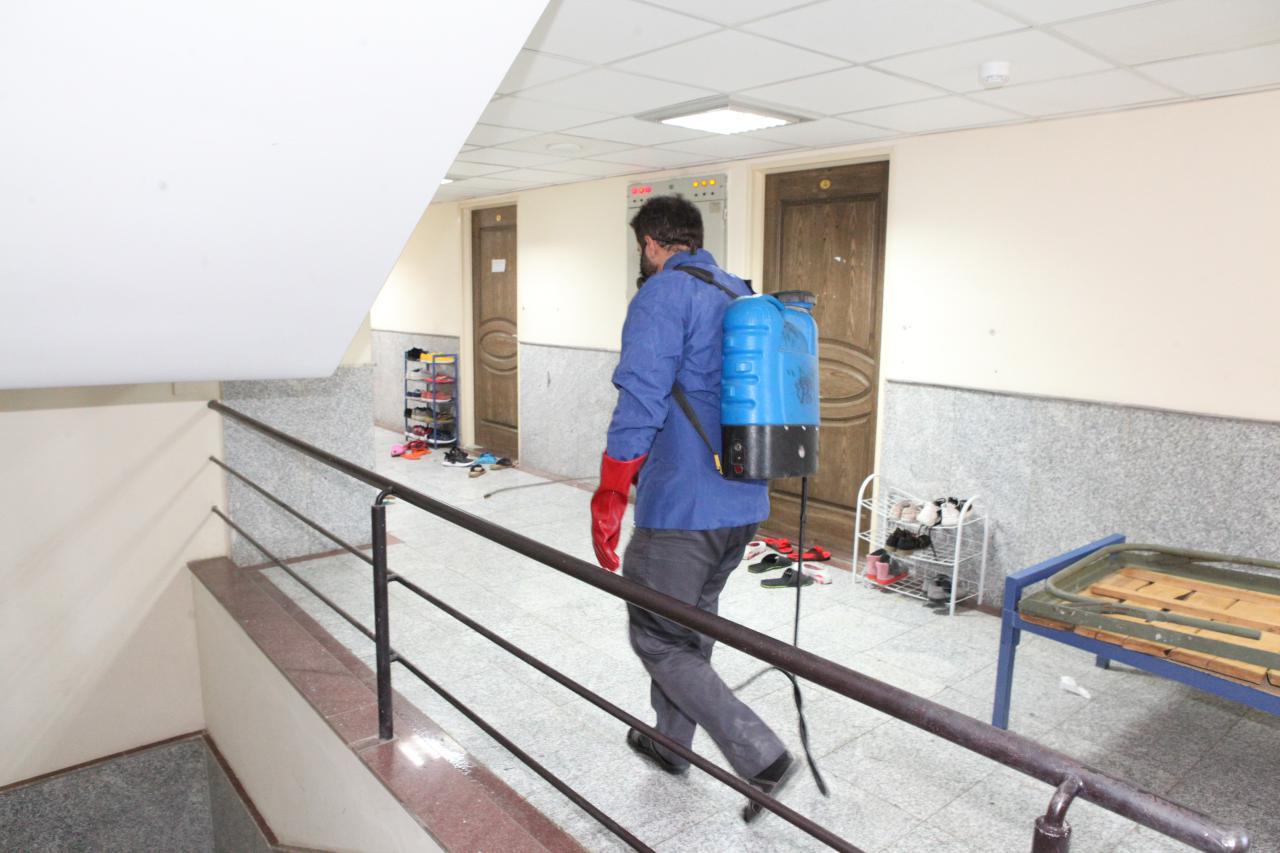 خوابگاه دانشجویی بعثت توسط مامورین بهداشت استان کاملا سمپاشی شد + گزارش تصویری