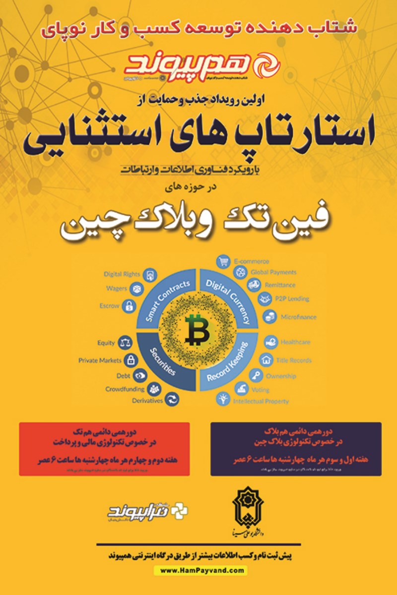 فراخوان جذب ایده و استارتاپ در حوزه فین تک و بلاک چین در شتاب دهنده هم پیوند مستقر در دانشگاه بوعلی سینا
