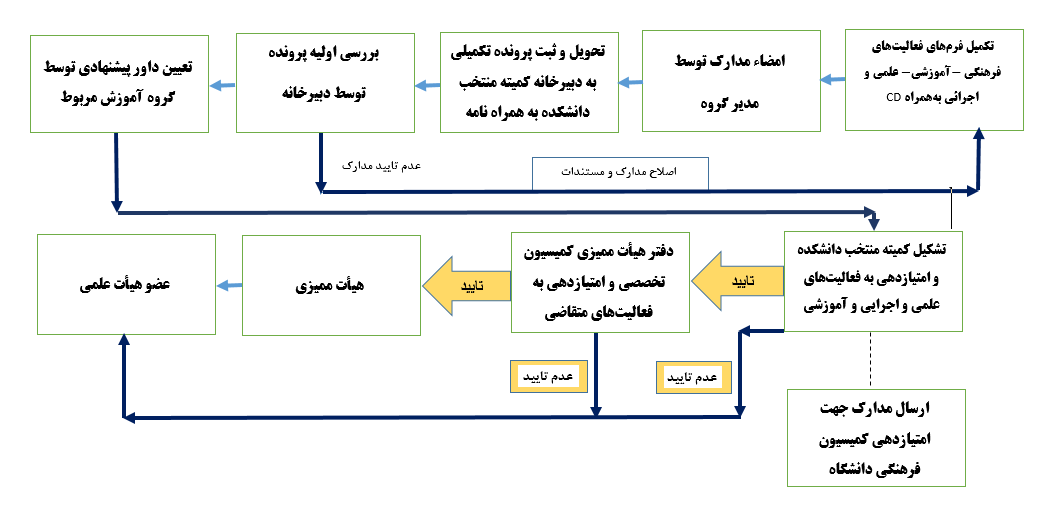 8- علاوه بر  تکمیل فرم های مربوط به شناسنامه علمی نیاز است یک گزارش جداگانه از مجموع فعالیتهای متقاضی ارتقاء (علمی، فرهنگ، اجرایی و آموزشی) به همراه مستندات و خلاصه پرونده در اختیار اعضای هیأت ممیزه قرار گیرد. در این گزارش تبیین میزان اهتمام عضو هیأت علمی در اجرای کلیه فعالیتهای ششگانه، ضروری است. (شروع اجرای این موضوع برای پرونده هایی که از ابتدای تابستان 1400 در هیأت ممیزه مطرح می گردند الزامی است).