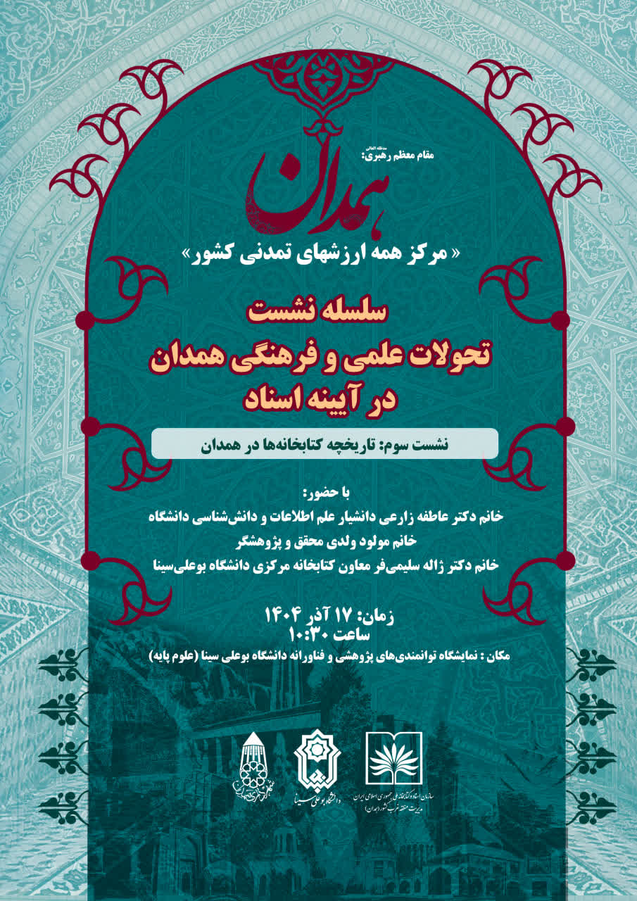 سومین نشست از سلسله نشستهای «تحولات علمی و فرهنگی همدان در آئینه اسناد» با موضوع «تاریخچه کتابخانه ها در همدان» و با حضور