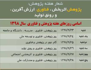 برگزاری هفته پژوهش و فناوری با شعار «پژوهش اثربخش، فناوری ارزش آفرین و رونق تولید»