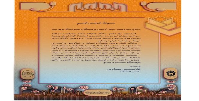 🔰پیام تبریک دکتر غلامحسین مجذوبی، رئیس دانشگاه بوعلی‌سینا، به مناسبت گرامیداشت روز معلم و دهه سرآمدی آموزش