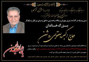 درگذشت خیّر نیکوکار و واقف نیکاندیش، حاجاکبر یعقوبی روشن موجب تألّم و تأثّر خاطر گردید. وجود پربرکت ایشان برای مردم این سرزمین، بالأخصّ دانشگاه بوعلیسینا همواره ثمرۀ خیرات و برکات فراوان بود. ایشان باقیات صالحات بسیاری از خود در این دنیای فانی به یادگار گذاشتند که هر کدام از آنها تا سالهای سال، رهتوشۀ آخرت و ذخیرۀ ثواب جاری برای آن مرحوم خواهد بود. اینجانب فقدان این واقفِ نیکوکار و نیکونهاد را به خانوادۀ شریف آن مرحوم بزرگوار و جامعۀ واقفان و نیکوکارانِ ایران، خصوصاً اعضای بنیاد خیّرین دانشگاه بوعلیسینا، تسلیت عرض نموده و برای روح متعالی ایشان، علوّ درجات را از خداوند منّان خواستارم.