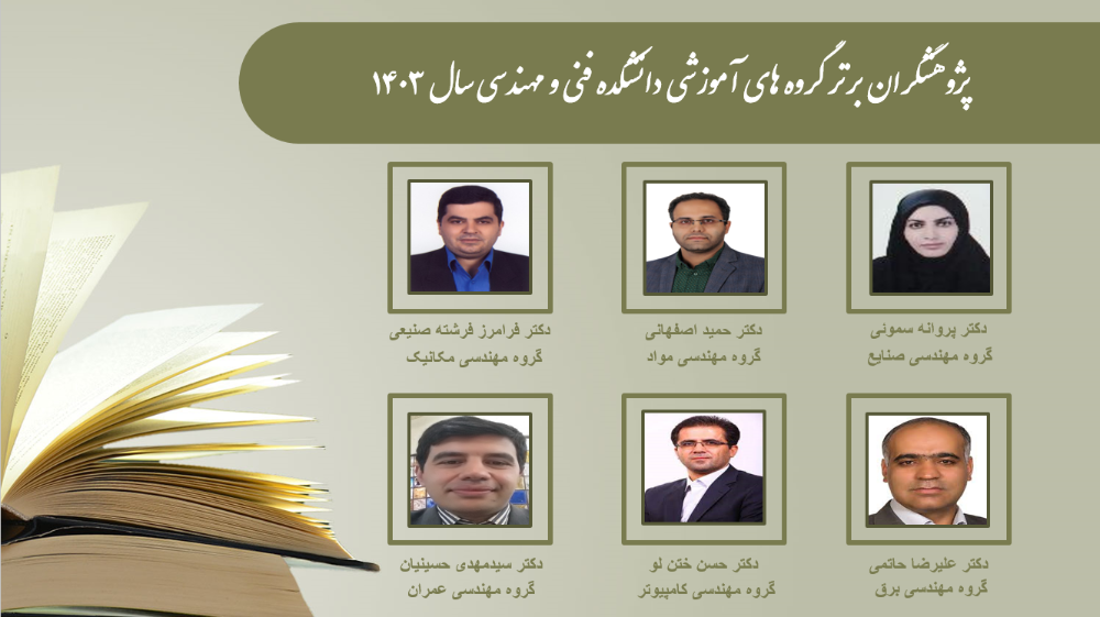 صفحه اصلی جزئیات خبر پژوهشگران برتر گروه های آموزشی دانشکده فنی و مهندسی