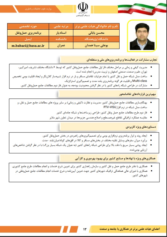 اعضای هیات علمی برتر در همکاری با جامعه و صنعت سال 1401
