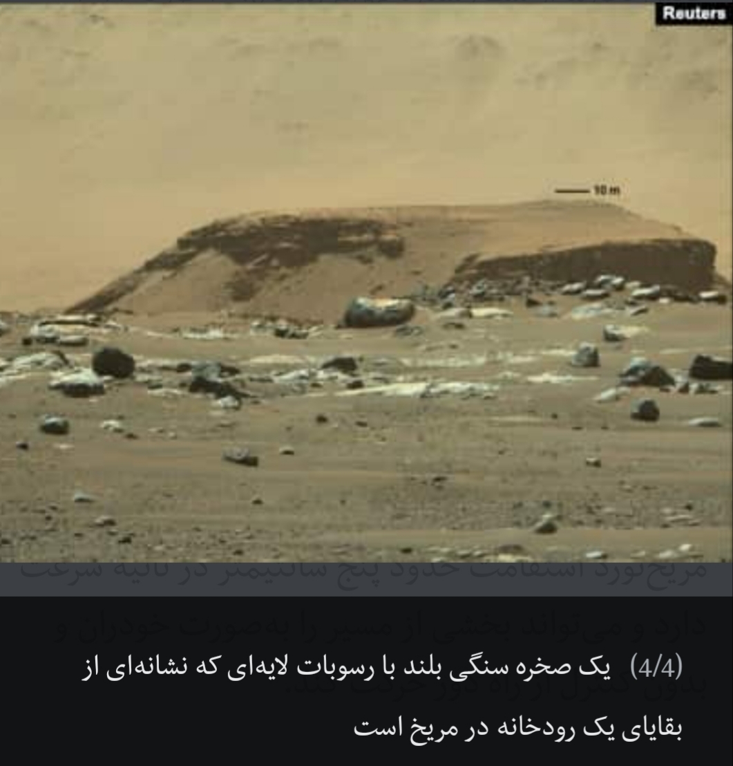 تصویری زیبا از سنگ های سیاره ی بهرام (مریخ) که بهرام پیما به زمین فرستاده است. می توان لایه ای بودن سنگ ها را به خوبی در تصویر مشاهده کرد.وجود سنگ های لایه ای احتمال وجود آب در سیاره ی بهرام را در ذهن تقویت می کند. چرا که معمولا" روش ایجاد سنگ های لایه ای،ته نشین شدن در زیر آب است. تصویر مذکور به پیوست است.
