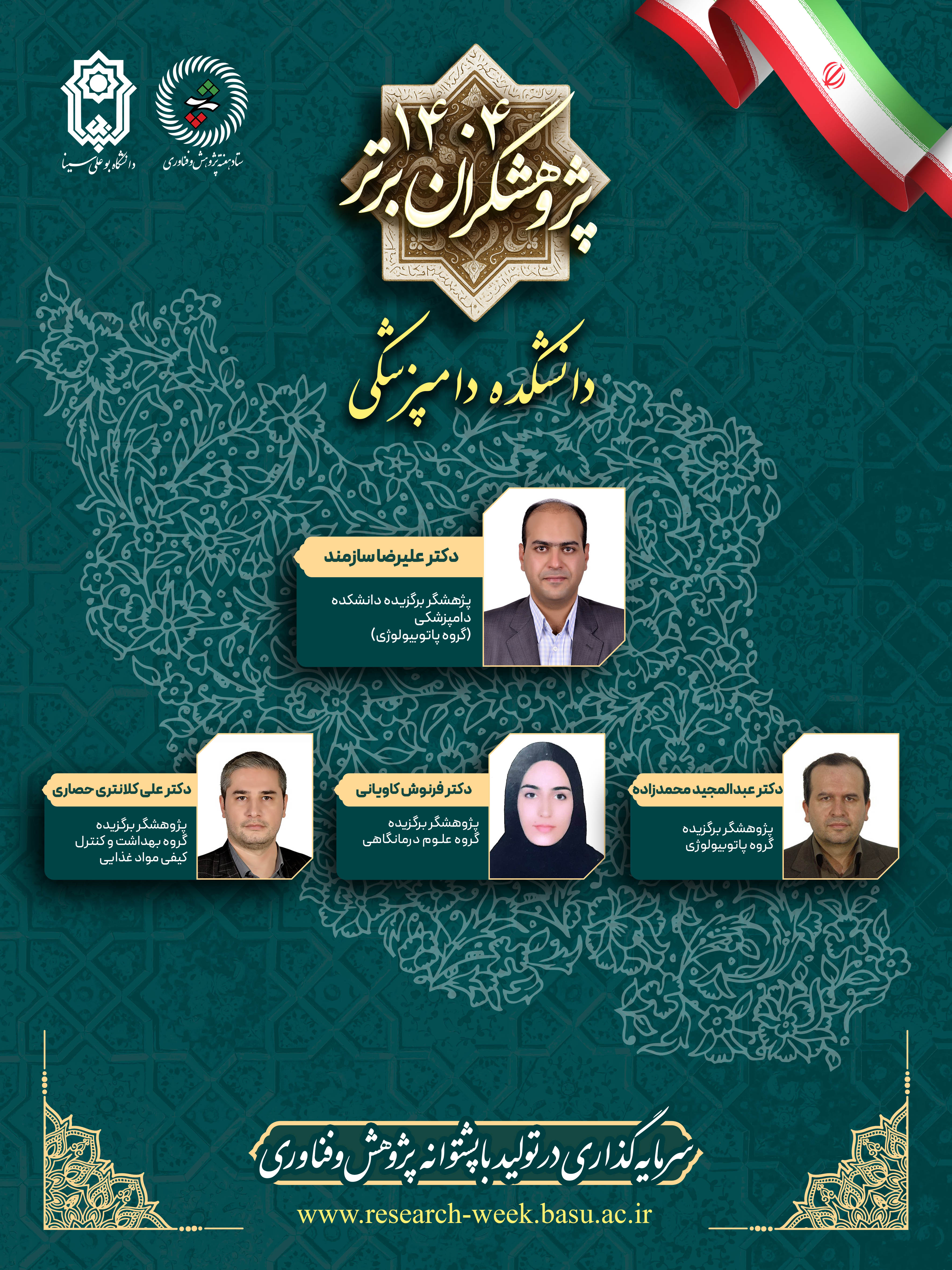 اساتید برگزیده پژوهشی دانشکده دامپزشکی در هفته پژوهش و فناوری سال 1404 معرفی گردیدند: