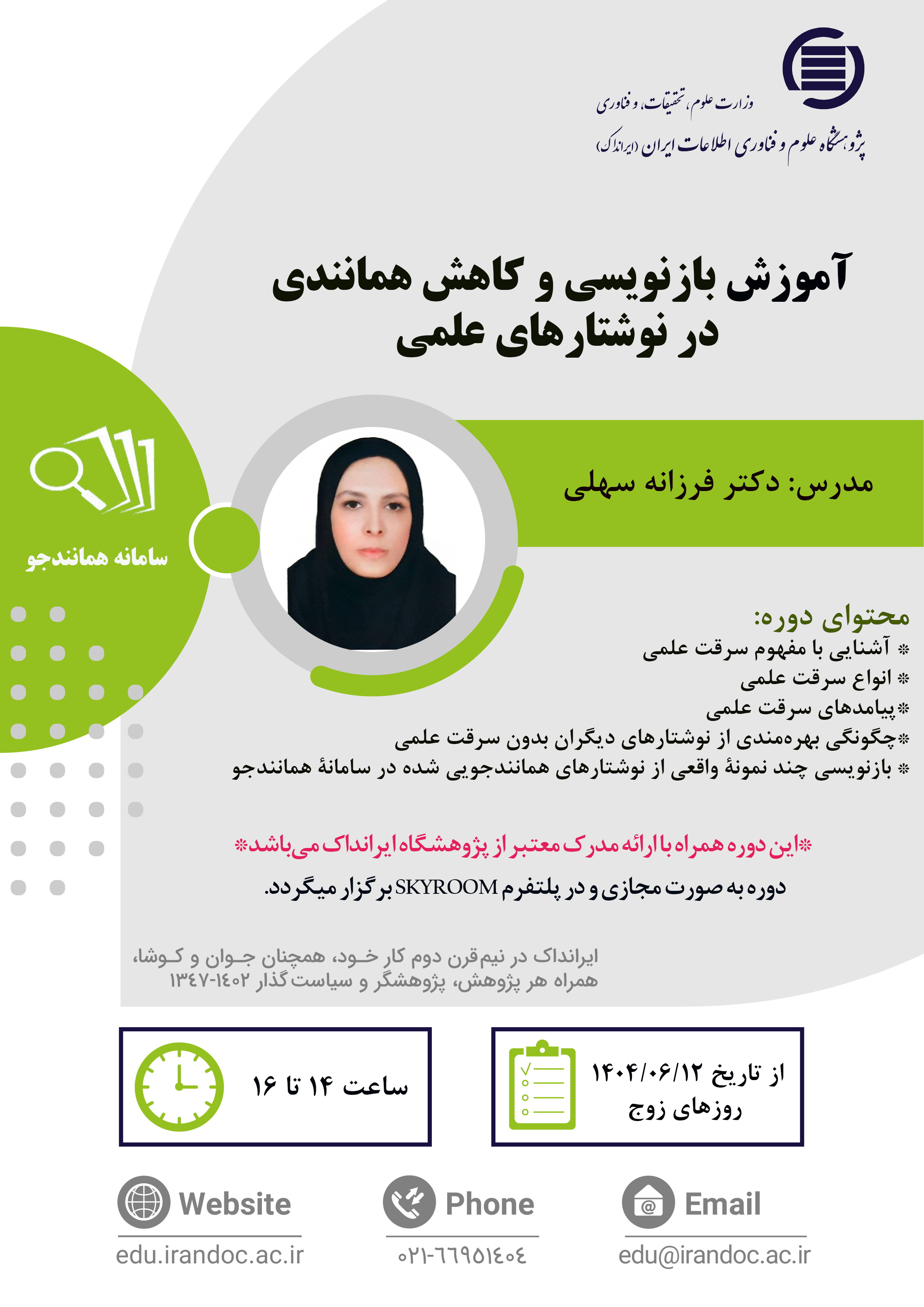 دورههای آموزشی سامانه همانندجو (اعضای هیات علمی و دانشجویان تحصیلات تکمیلی)