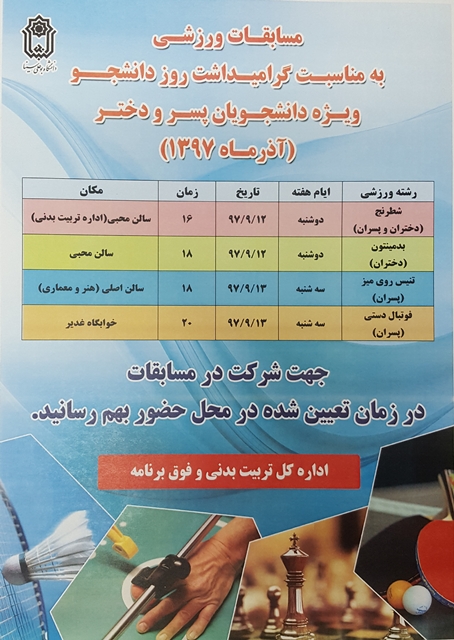 نتایج مسابقات ورزشی به مناسبت گرامیداشت روز دانشجو ویژه دانشجویان پسر و دختر آذر ماه 97