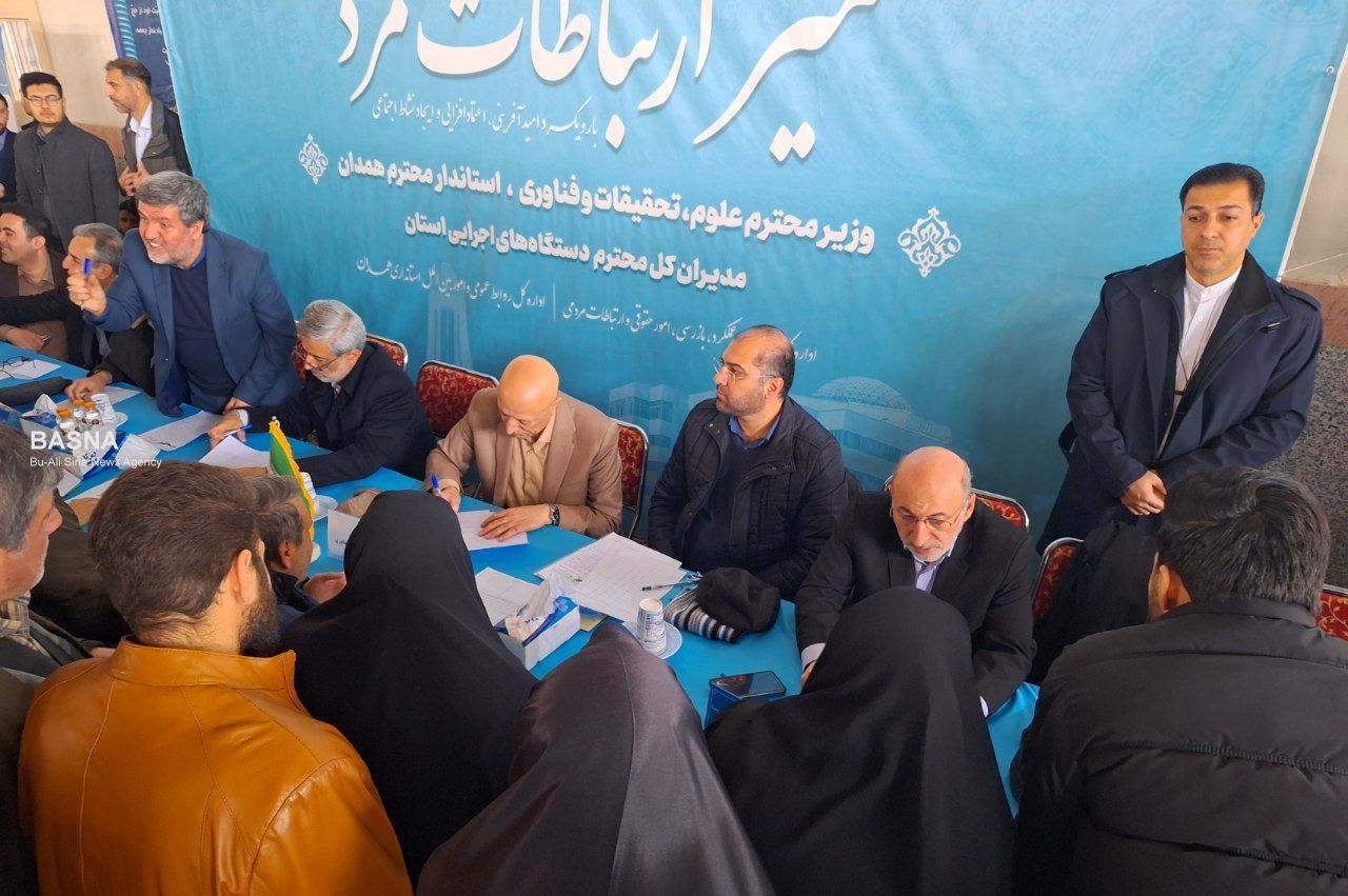 با حضور گسترده مراجعین؛وزیر علوم، استاندار همدان و رئیس دانشگاه بوعلیسینا به سؤالات مردم پاسخ دادند + گزارش تصویری