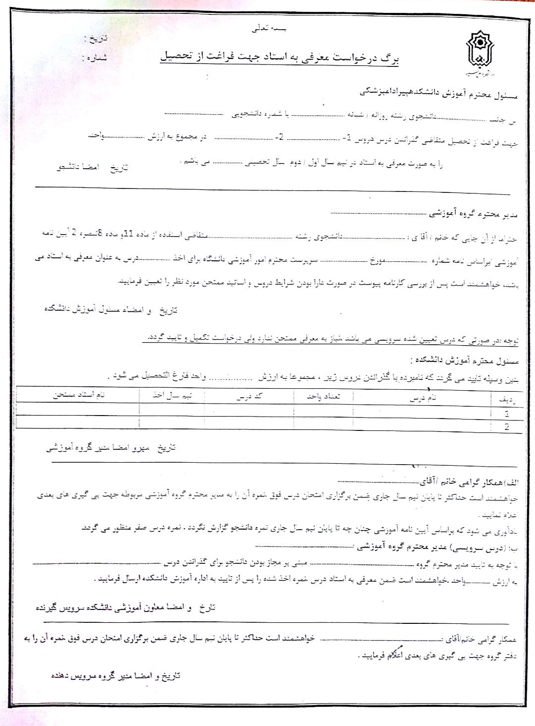 فرم درخواست انصراف از تحصیل ۶۳ KB