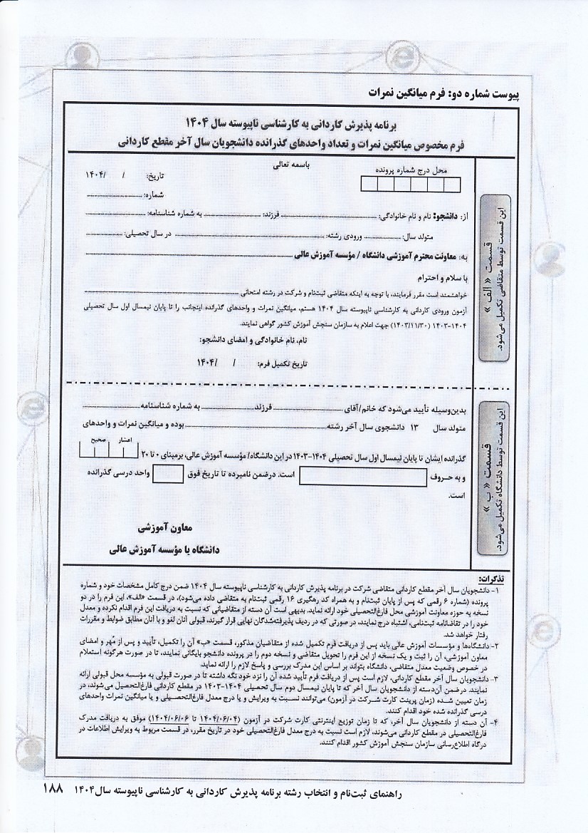 ضمن عرض سلام و تبریک به مناسبت قبولی شما در دانشگاه بوعلی سینا به اطلاع می رساند : ثبت نام پذیرفته شدگان مقطع کارشناسی ناپیوسته سال 1404 به صورت غیرحضوری و حضوری خواهد بود.